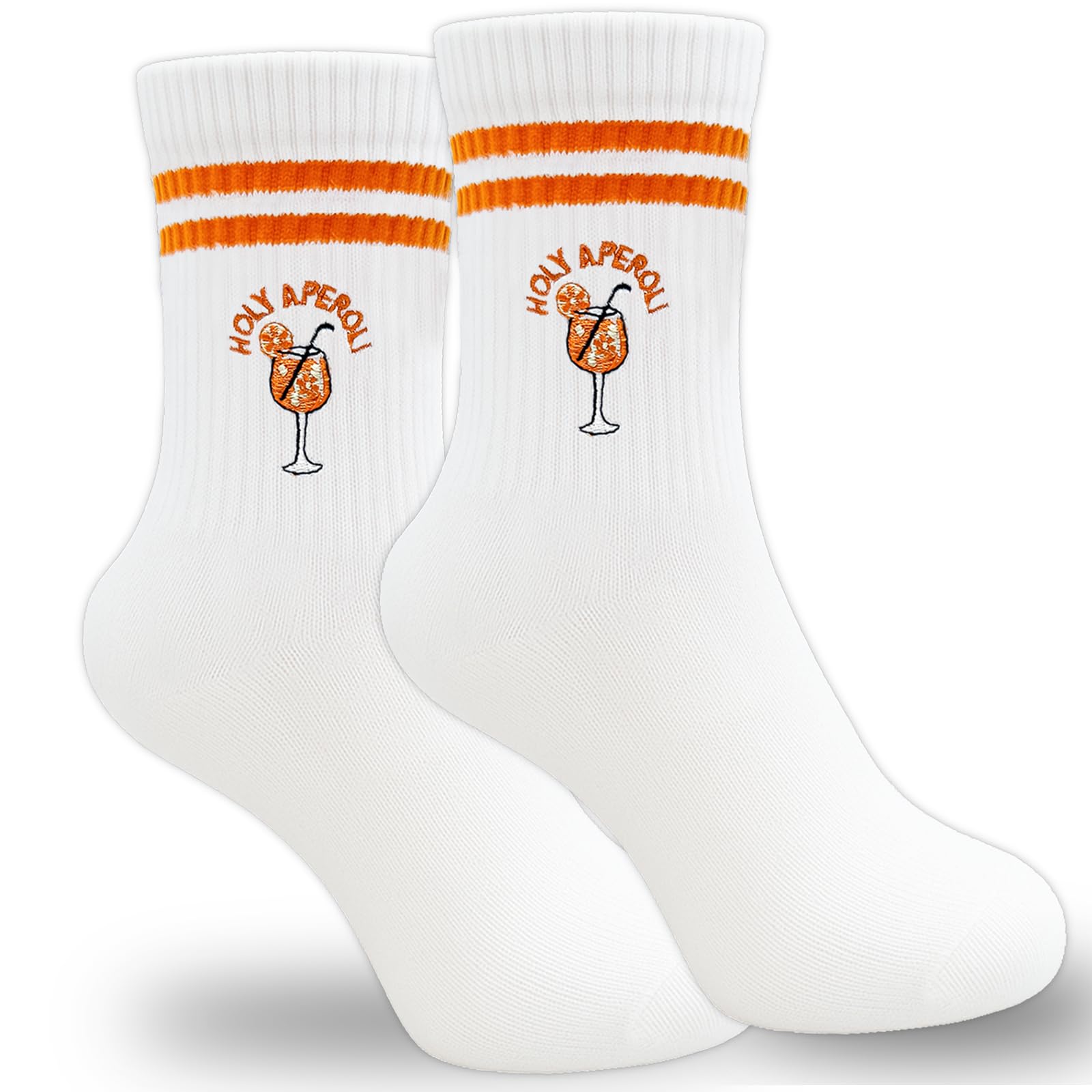 Wenn du ein unkompliziertes, lustiges Geschenk willst, sind diese Socken eine leichte Wahl. Hier geht’s zur Produktseite: Aperol Geschenk Gestickte Aperol Spritz Socken.
