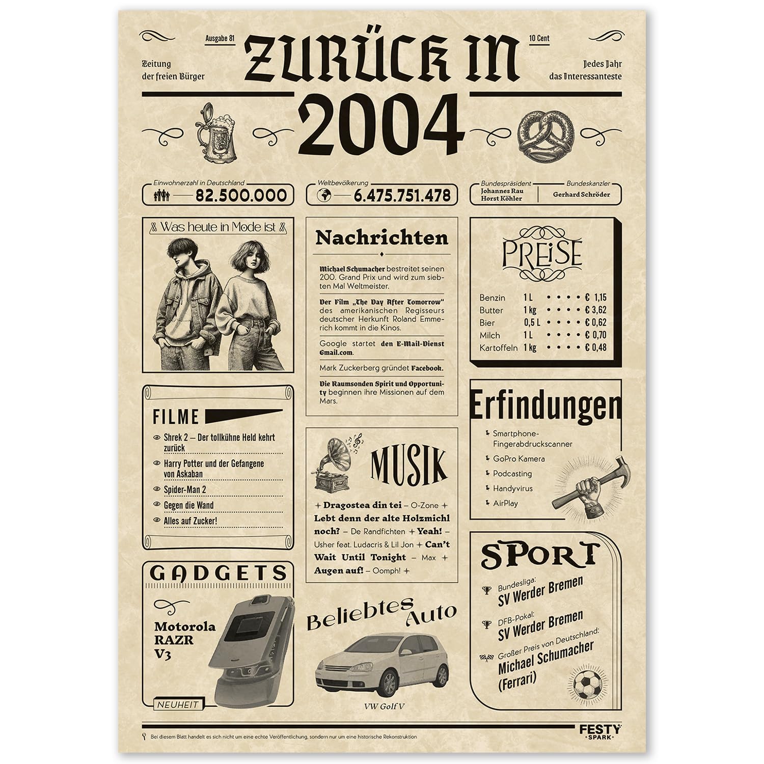 Diese nostalgische A4-Karte eignet sich gut als Geschenk für jeden, der 2004 geboren wurde und jetzt 22 Jahre alt wird.