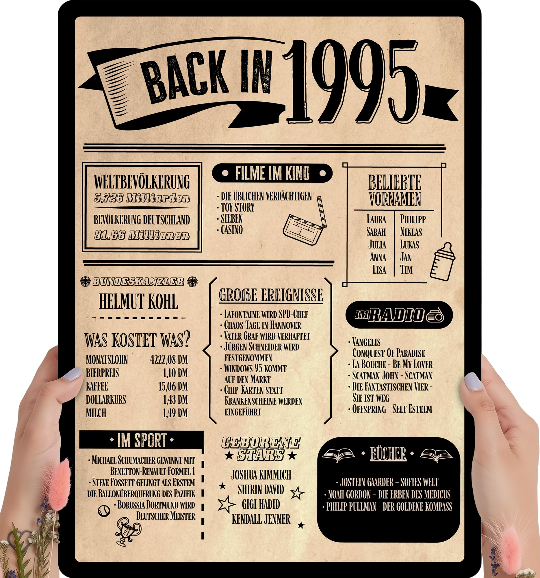 - Die Vintage-Gestaltung mit dem Jahr 1995 macht das Geschenk persönlich