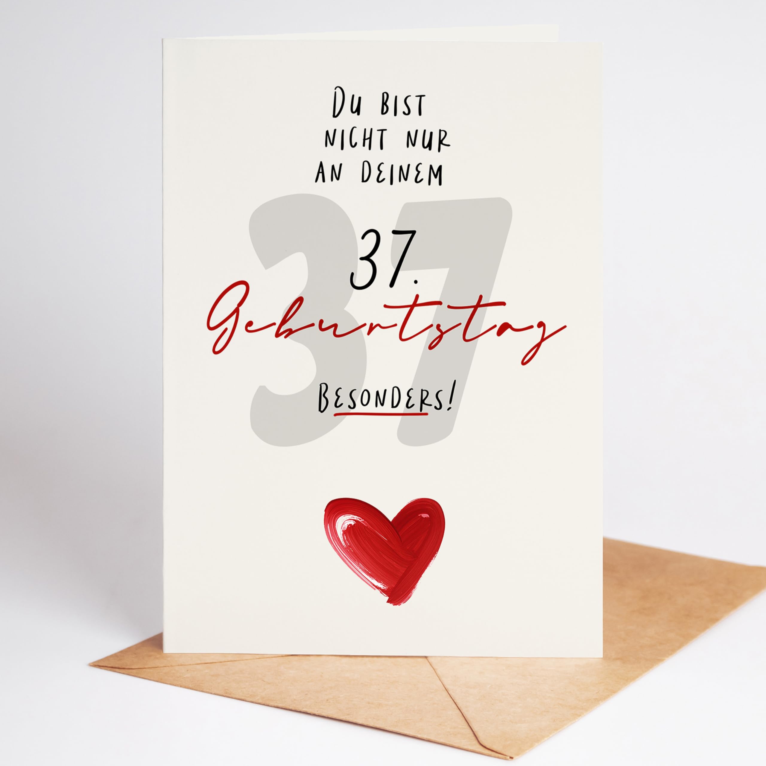 Diese Klappkarte bietet eine stilvolle Möglichkeit, einer Frau zum 37. Geburtstag zu gratulieren, besonders wenn man Wert auf hochwertiges Papier und persönlichen Platz für Grüße legt.