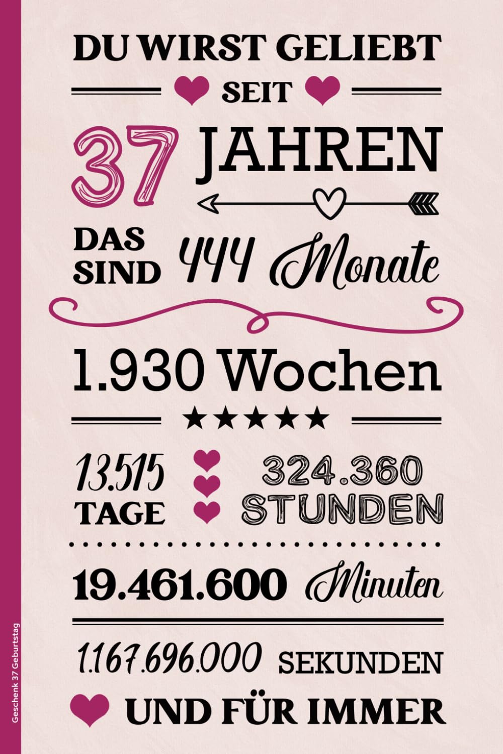 Dieses Notizbuch eignet sich gut für alle, die ein einfaches und persönliches Geschenk für eine 37-jährige Frau suchen.