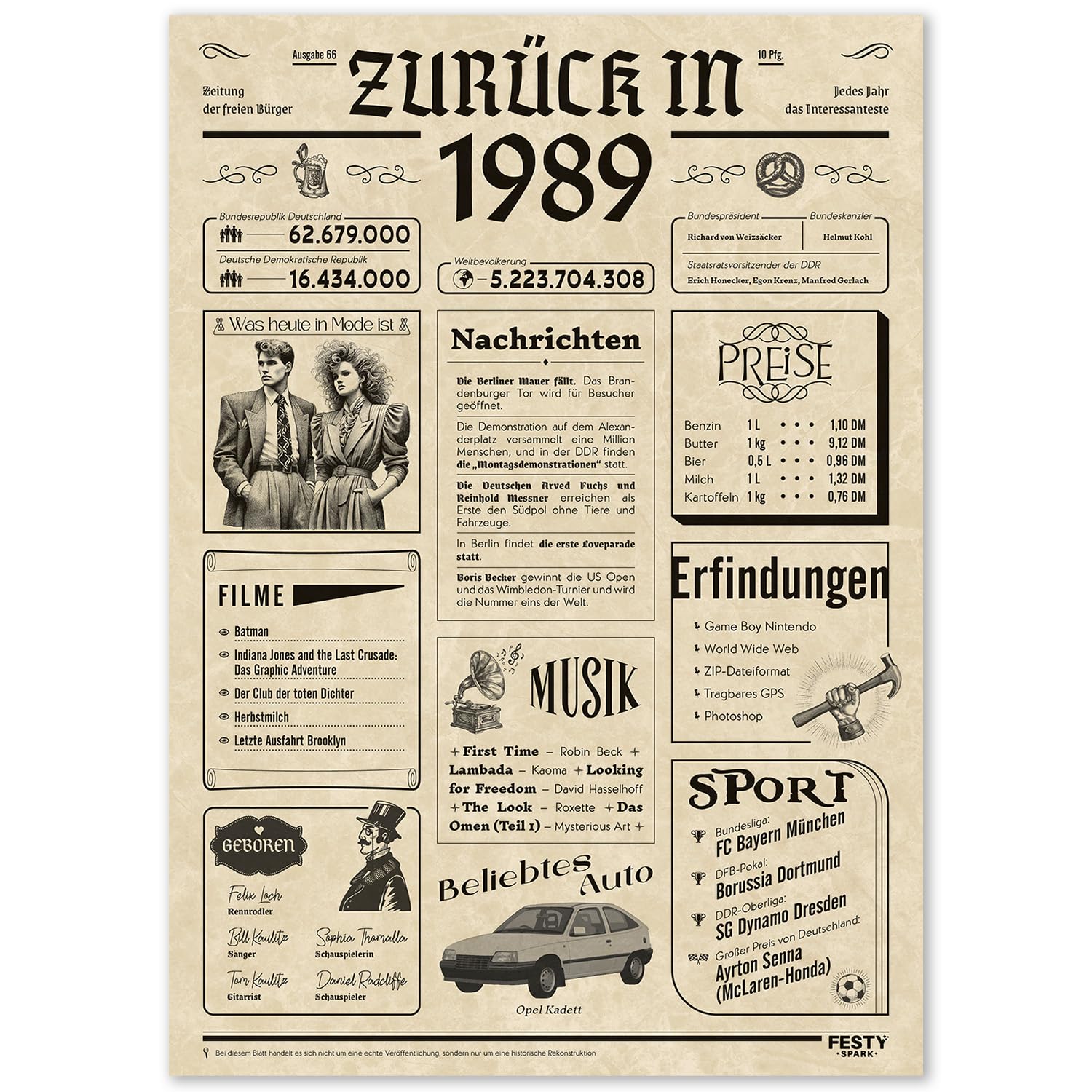 Diese nostalgische Geburtstagskarte im A4-Format bietet eine durchdachte Geschenkidee für alle, die 1989 geboren wurden und gerne in Erinnerungen schwelgen.