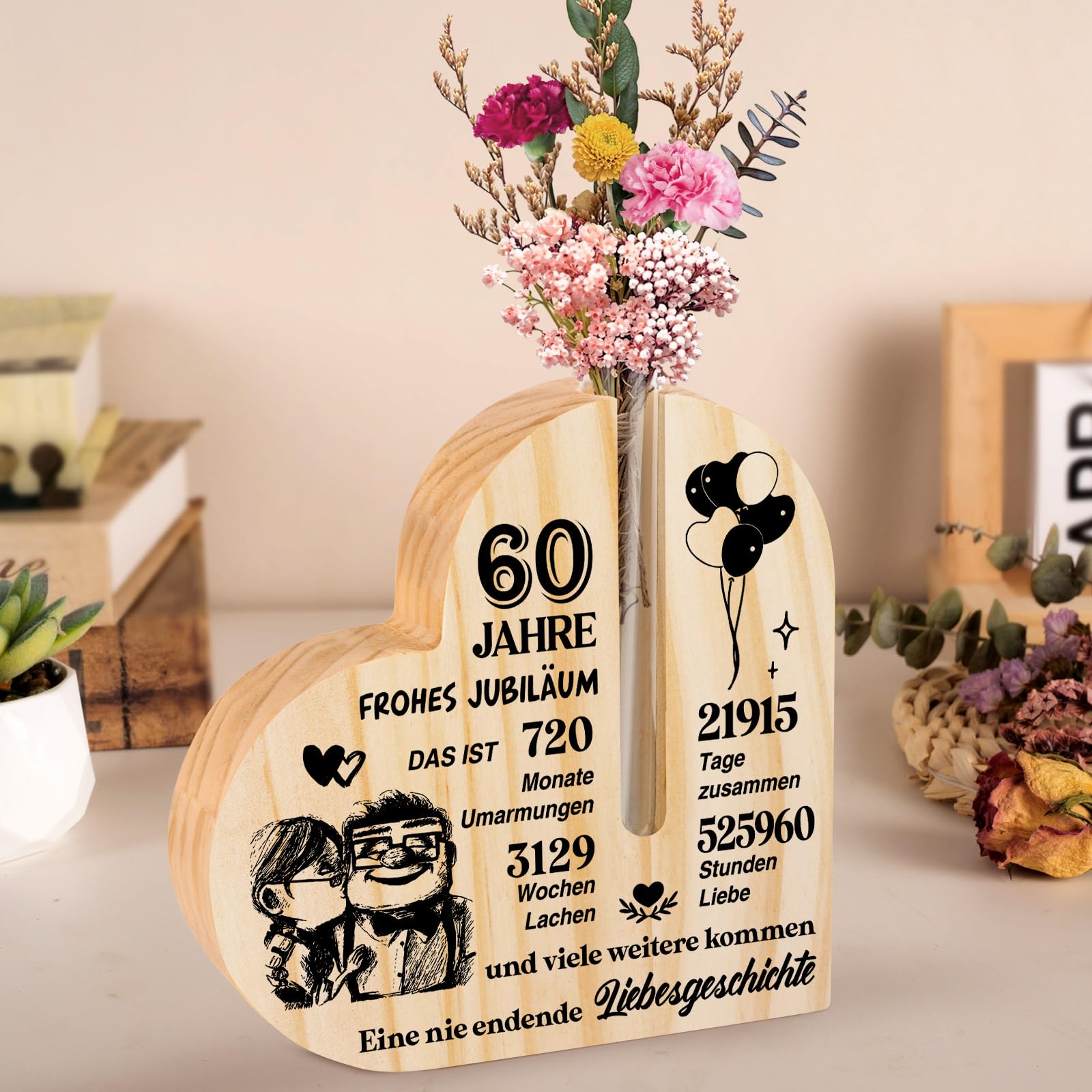 Das Herz-Holzornament passt, wenn du ein symbolisches, langlebiges Geschenk für einen 60. Hochzeitstag suchst.