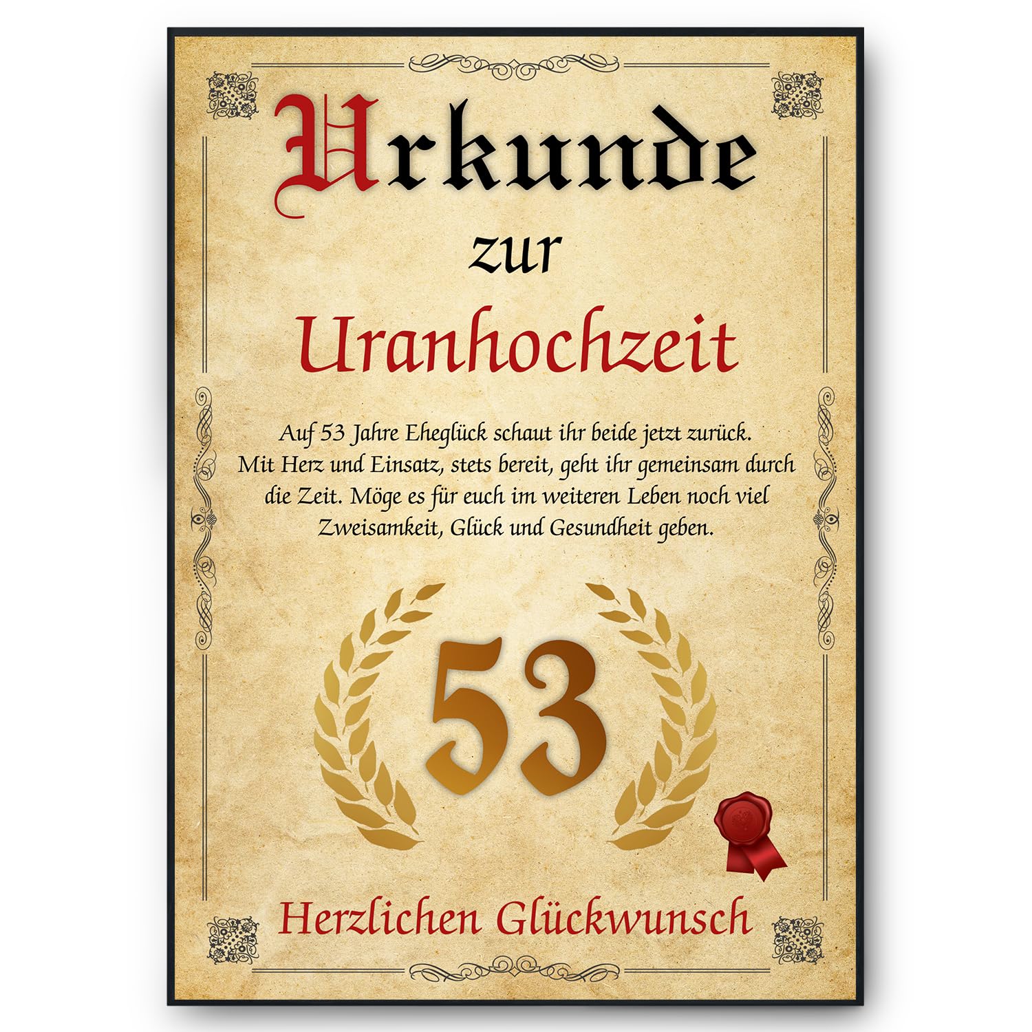 Urkunde 53. Hochzeitstag von Tigerlino