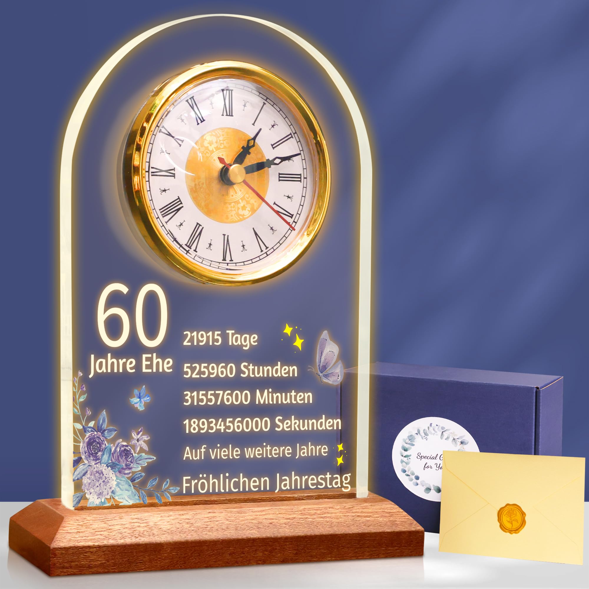 Diese elegante, symbolische Uhr hebt das 60. Ehejahr schön hervor.