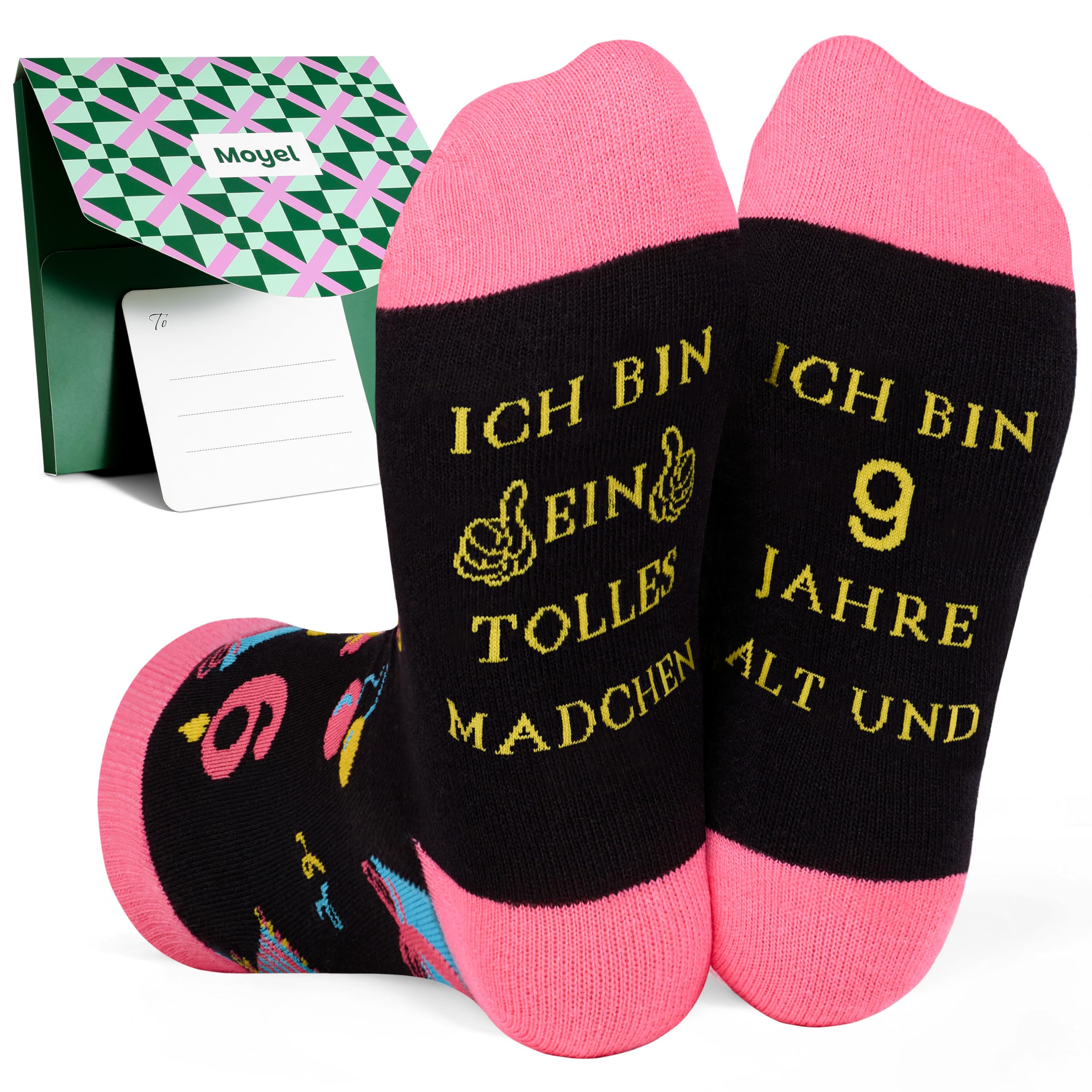 Diese bunten Socken mit Buchstabenmuster eignen sich gut als Geburtstagsgeschenk für Mädchen, die ihren neunten Geburtstag feiern.