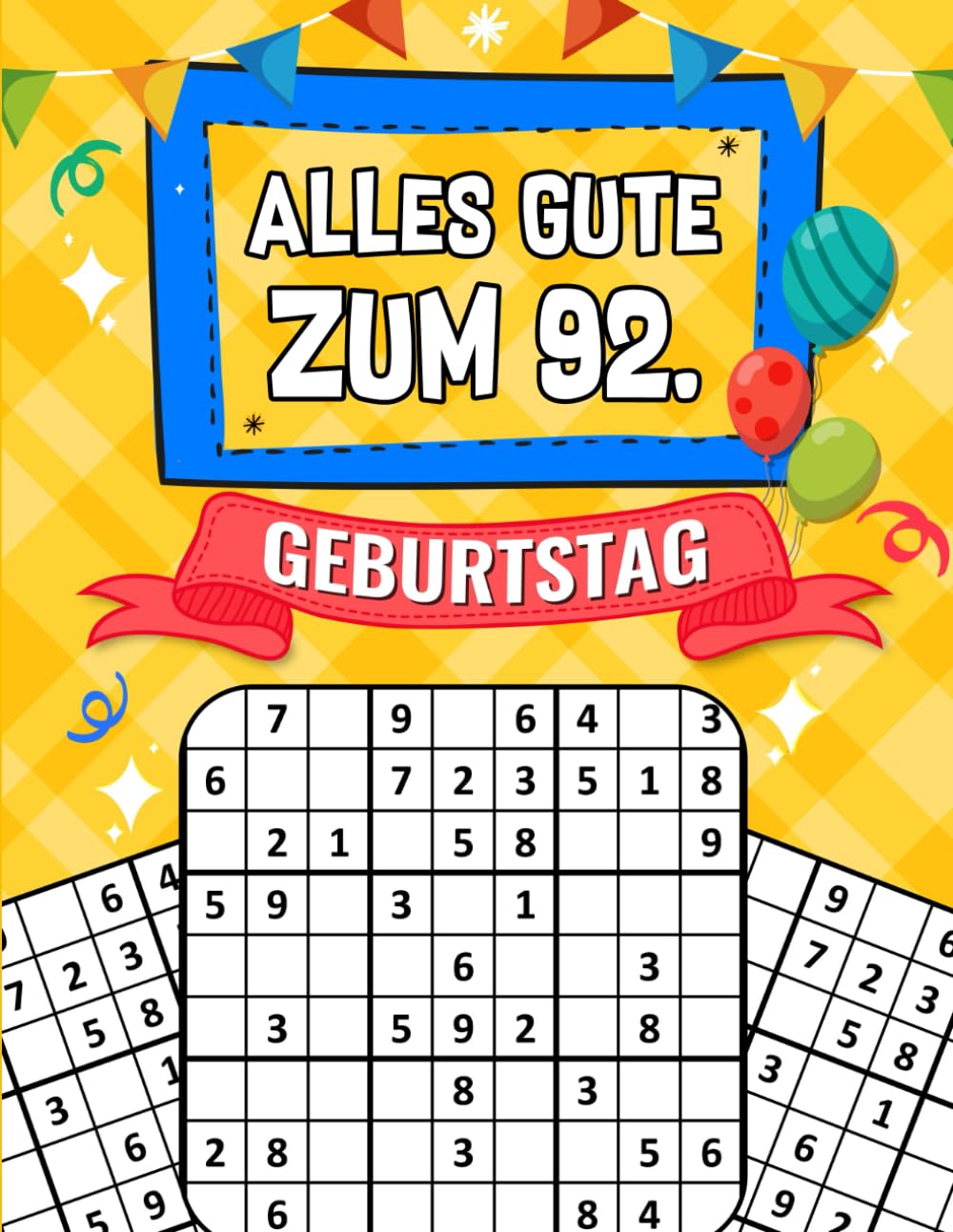 Dieses Sudoku-Buch bietet eine durchdachte Geschenkidee für den 92. Geburtstag mit 200 Rätseln in verschiedenen Schwierigkeitsgraden.