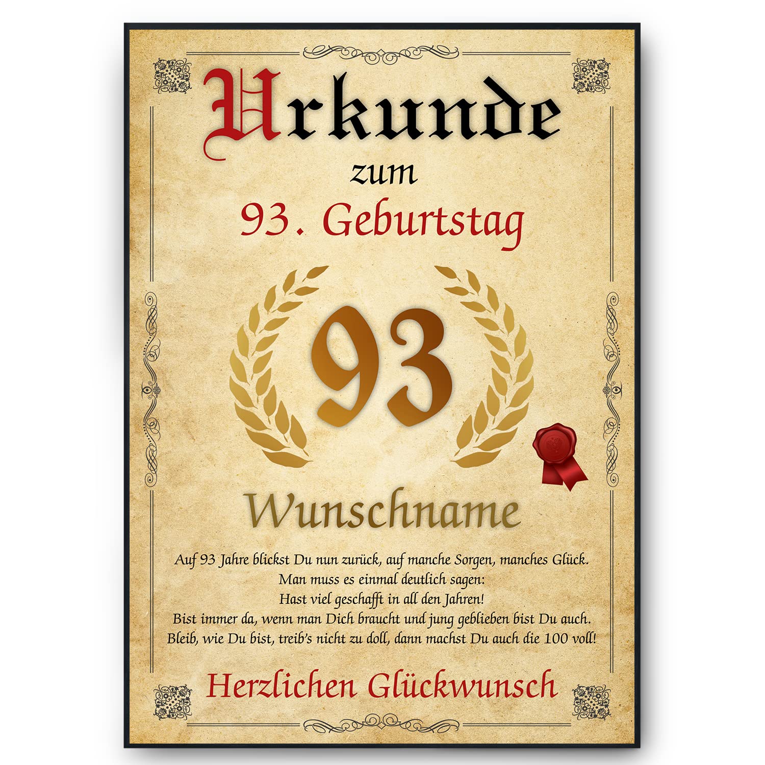Personalisierte Geburtstagsurkunde zum 93. Geburtstag