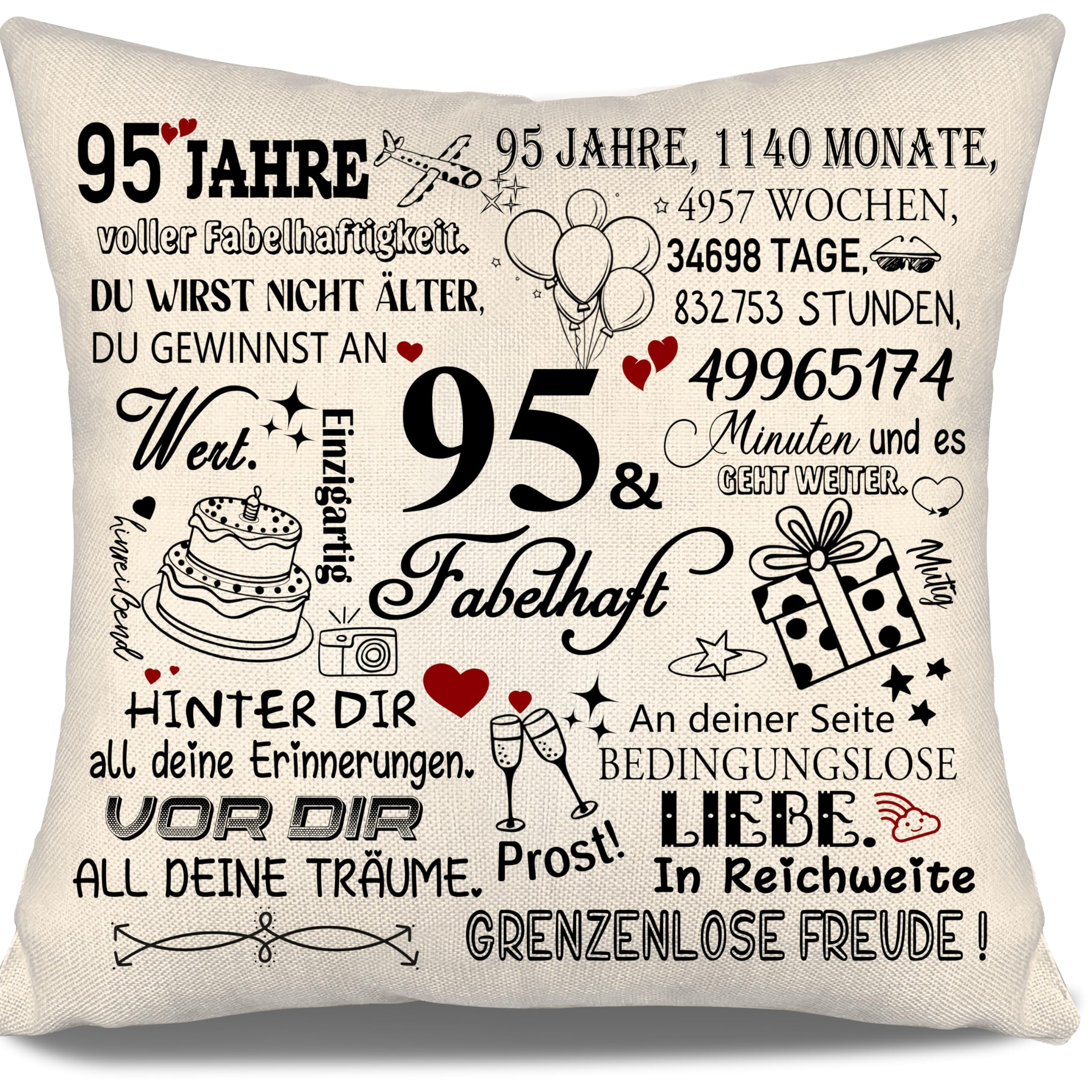 Ich empfehle diesen Kissenbezug, wenn du ein preiswertes, dekoratives Geschenk für einen 95. Geburtstag oder Jahrestag suchst.