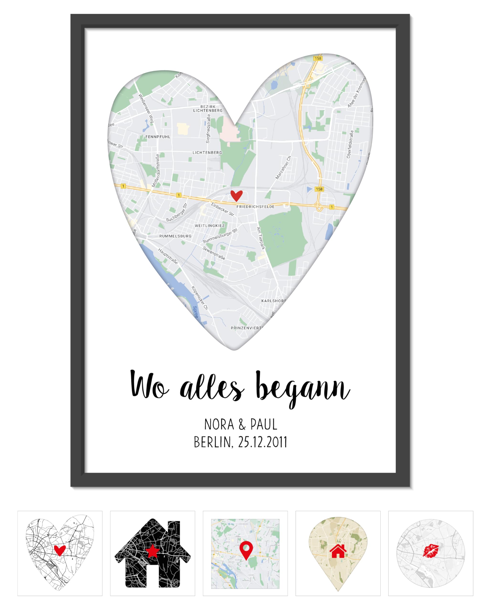 Das Poster ist was für dich, wenn du ein kleines, sehr persönliches Geschenk suchst, das Ort, Datum und Namen zeigt.