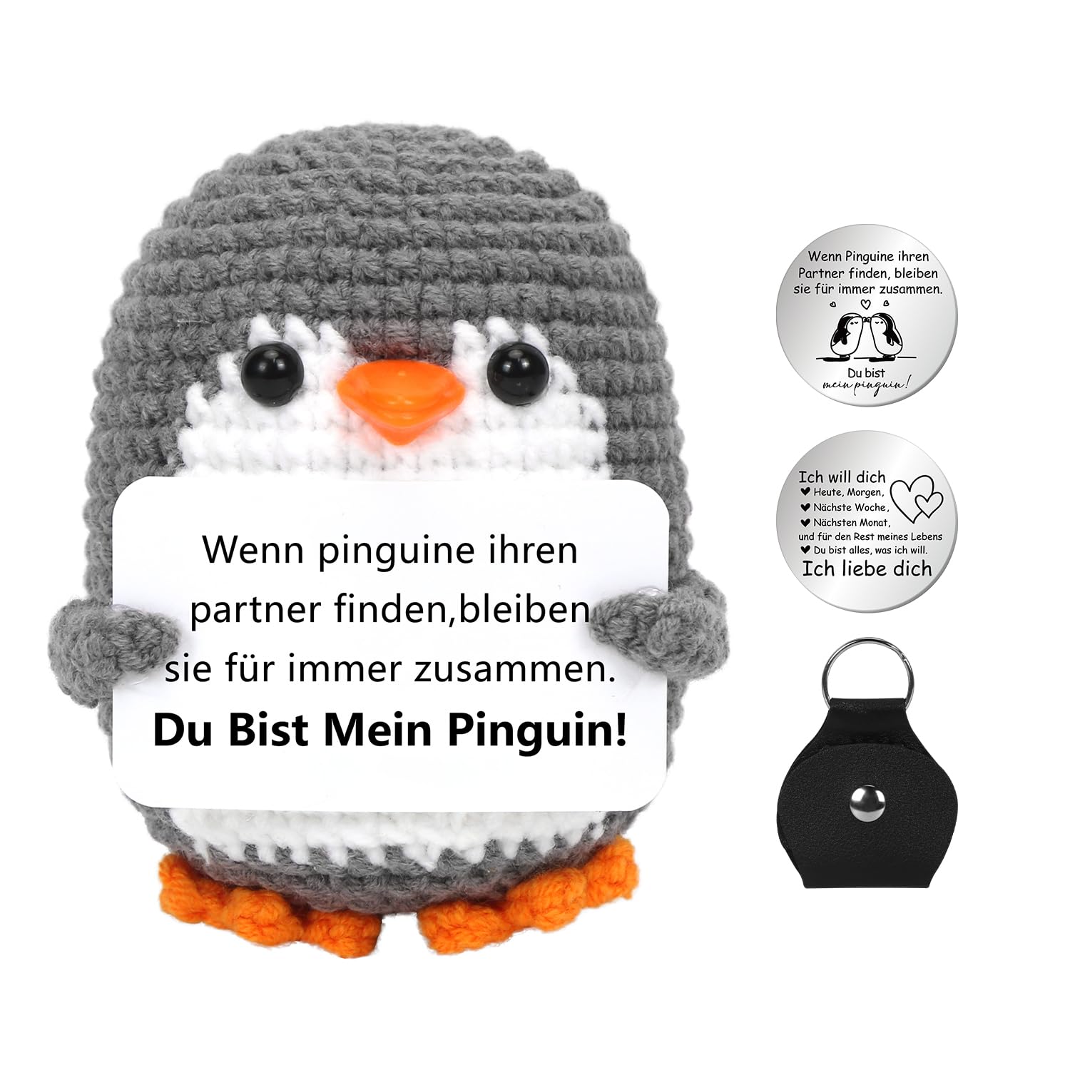 Ich mag die Idee: eine gestrickte Pinguinpuppe mit Liebeskarte fühlt sich echt persönlich an. Die Handarbeit gibt dem Ganzen Charme, auch wenn’s nur ein kleines Teil ist.