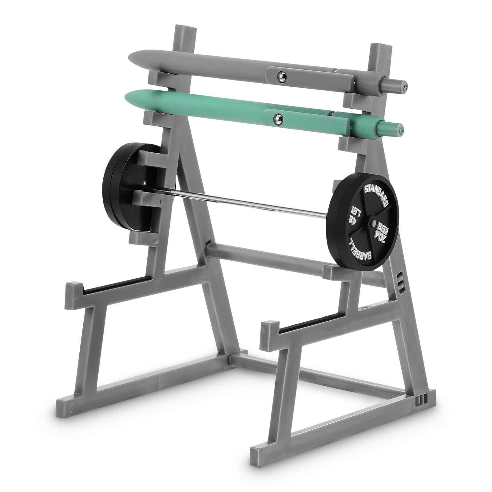 Ich mag das Konzept, weil es gezielt Fans von Gewichtheben anspricht. Das kleine Squat Rack sieht wie ein Miniatur-Gewichtheberständer aus und bringt Humor auf den Schreibtisch.