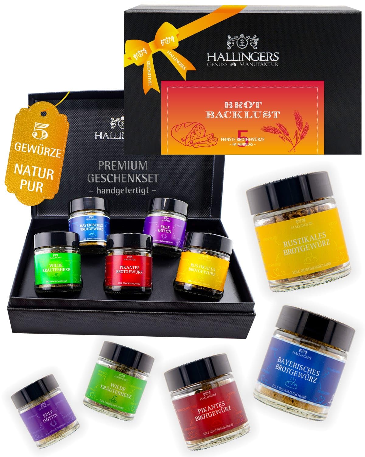 • Schöne Geschenkverpackung und fünf feine Gewürzsorten.