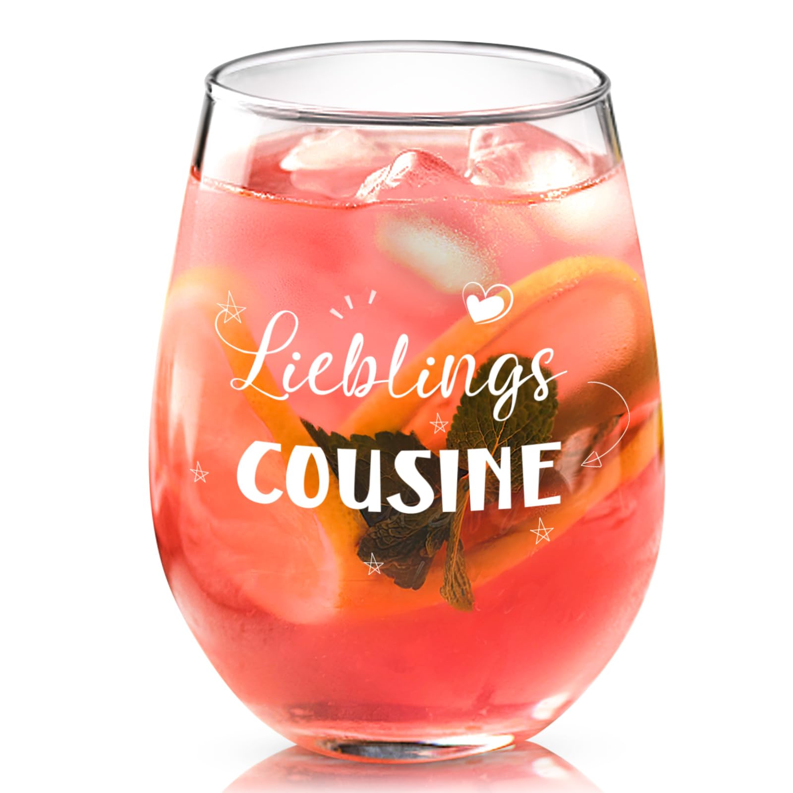 Ich sehe das Glas als praktisches, persönliches Geschenk. Wenn du ein formelles Weinglas mit Stiel willst, ist das hier vielleicht nichts – aber als Geschenkidee für Cousinen passt es.