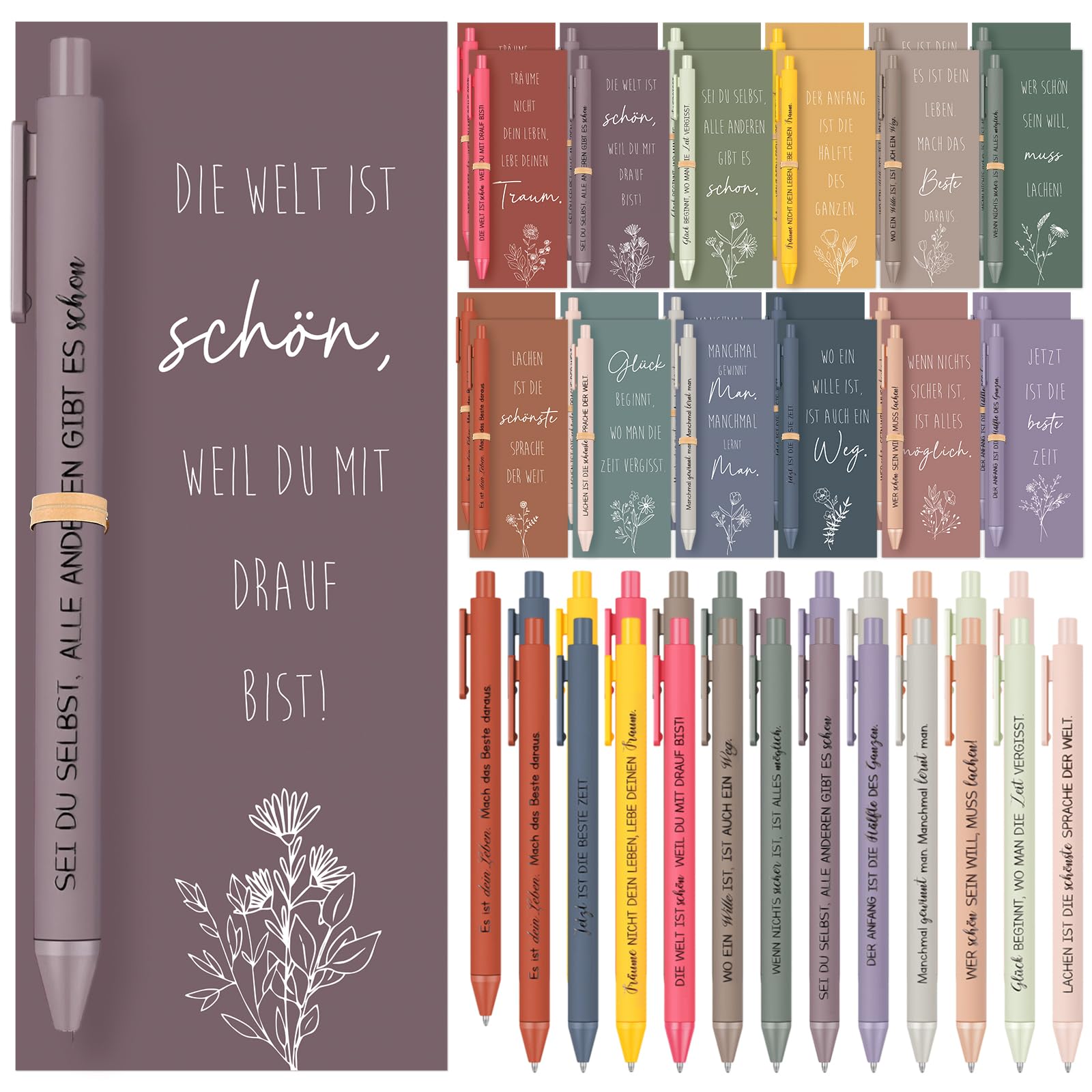 - Positive Botschaften auf Karten und Stiften, passt zu vielen Anlässen.
