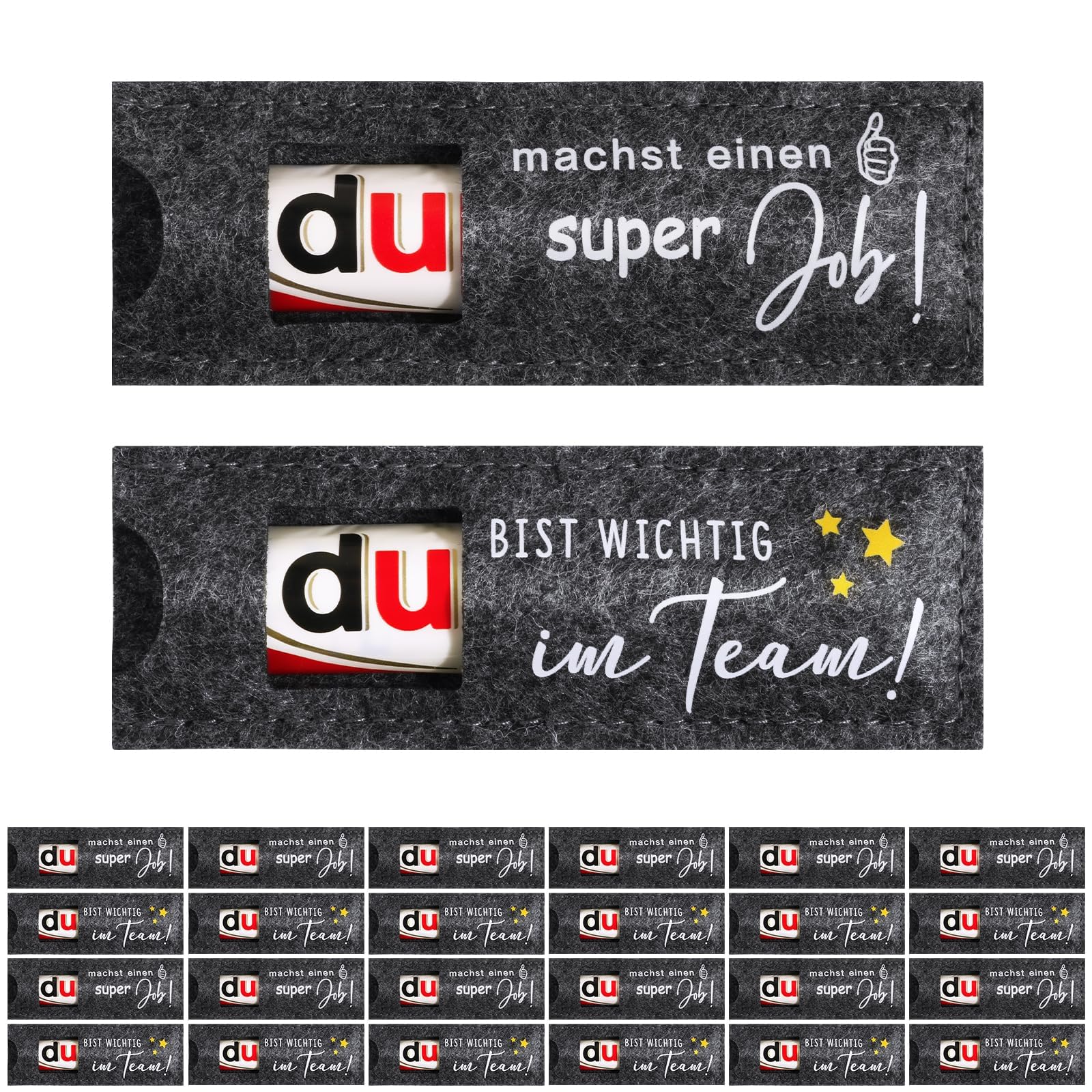 Ich finde gut, dass die Filzhüllen klar sagen „Du bist wichtig im Team“ oder „Du machst einen super Job“. Das macht sie direkt passend für kleine Dankesaktionen.