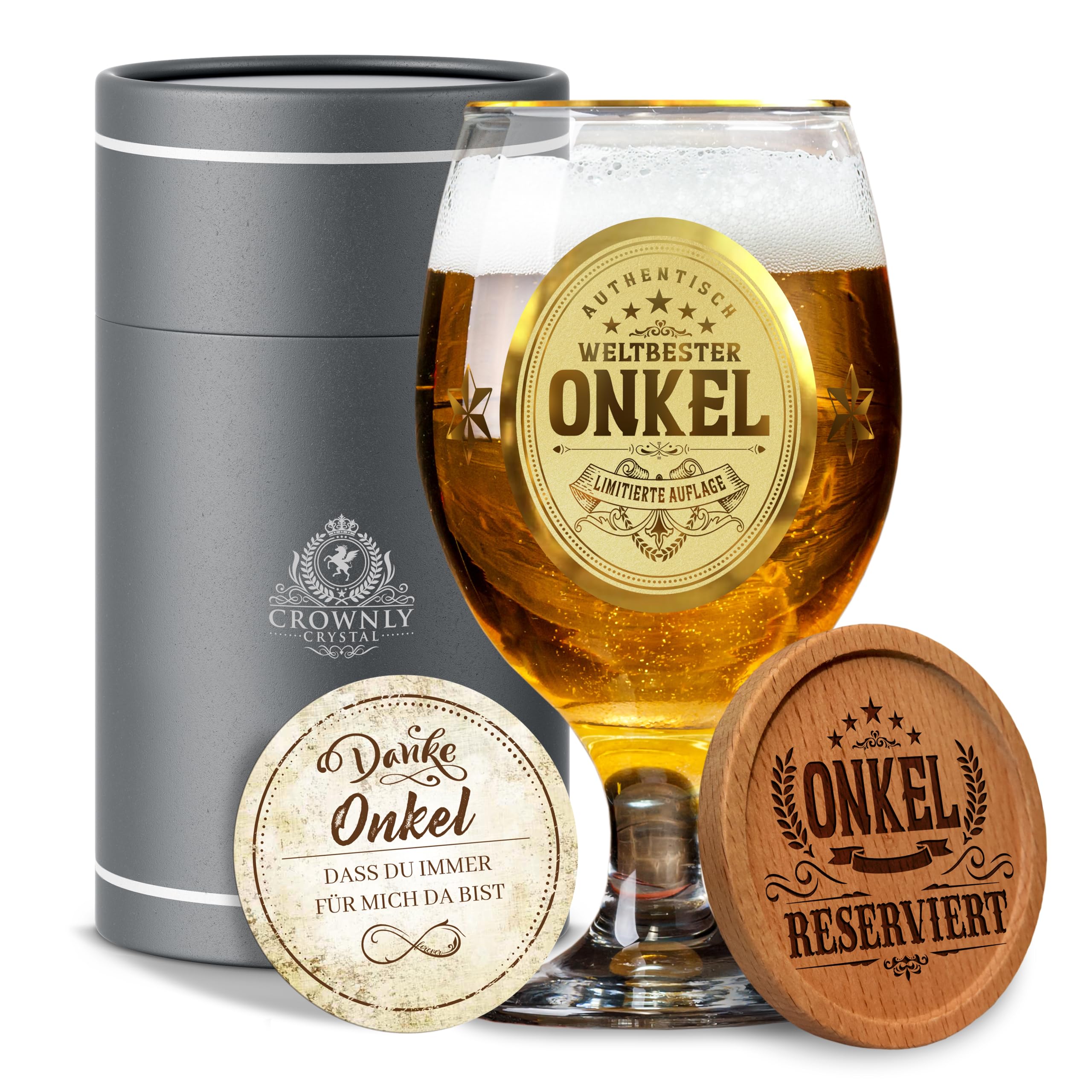 Wer ein einzelnes, persönliches Präsent für seinen Onkel sucht, liegt mit diesem Bierglas ziemlich richtig. CROWNLY Kristall Bierglas (Personalisiert)
